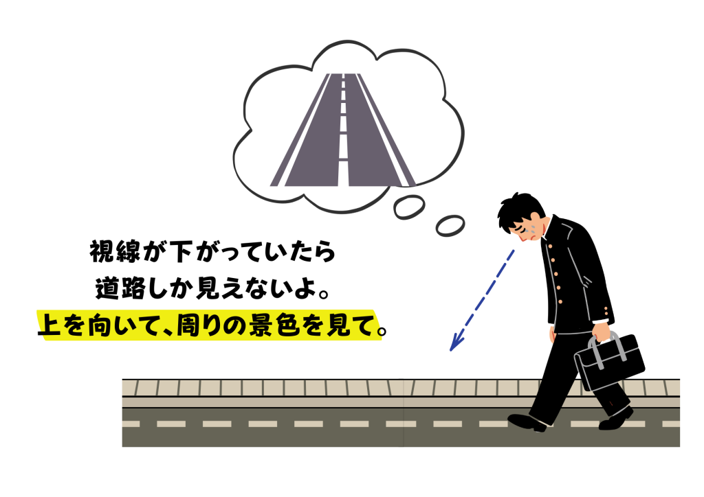 散歩をしてもネガティブな感情や憂いが取れない人の目線は「下」を向いていることが多いです。